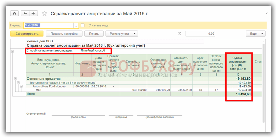 Начисление амортизации в 1С 8.3 – пошаговая инструкция