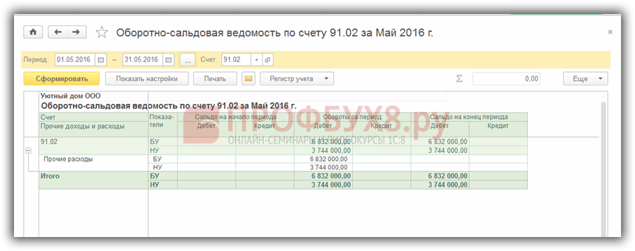 Рис.2) В месяце принятия к учету основного средства стоимостью до 100 000 рублей после выполнения обработки Закрытие месяца и выполнения регламентной операции Расчет налога на прибыль будет признано постоянное налоговое обязательство (ПНО) или постоянный налоговый актив (ПНА). Со следующего месяца после принятия к учету это основное средство начинает амортизироваться только в бухгалтерском учете. При выполнении регламентной операции Амортизация и износ основных средств формируются бухгалтерские проводки (Смотрите Рис.3): Дебет 20 (25, 26, 44) Кредит 02.01 — на сумму амортизации.