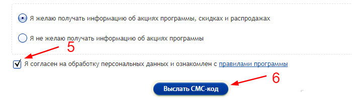 По желанию отметьте пункт с возможностью получать или отказаться от акционных сообщений. В обязательном порядке поставить галочку на согласие обработки персональных данных.