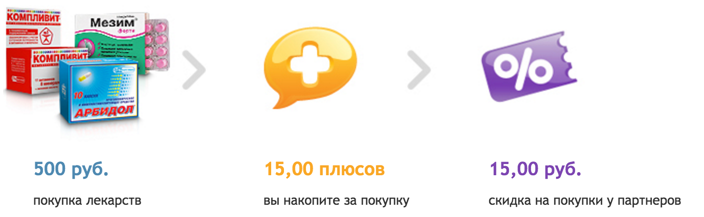 - 3% плюсов начисляются, если вы совершаете покупку в аптеке или в её магазинах-партнёрах от 251 до 600р.;