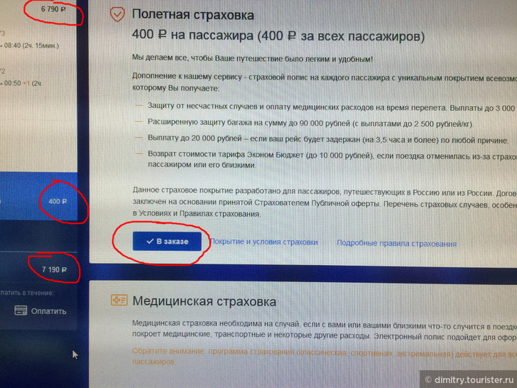 Жмём. Отменяем. Картинка только теперь приобретает тот вид, который должна иметь изначально. Цена соответствует цене билета без приколов, а страховка просит: