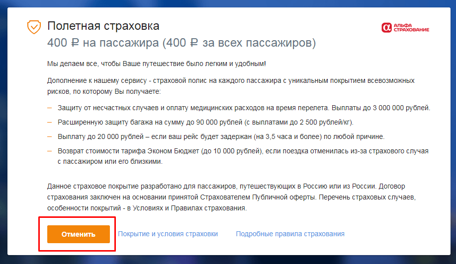 Как отказаться от полетной страховки «Аэрофлота» во время покупки билета