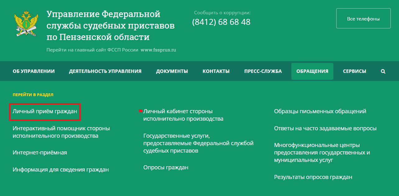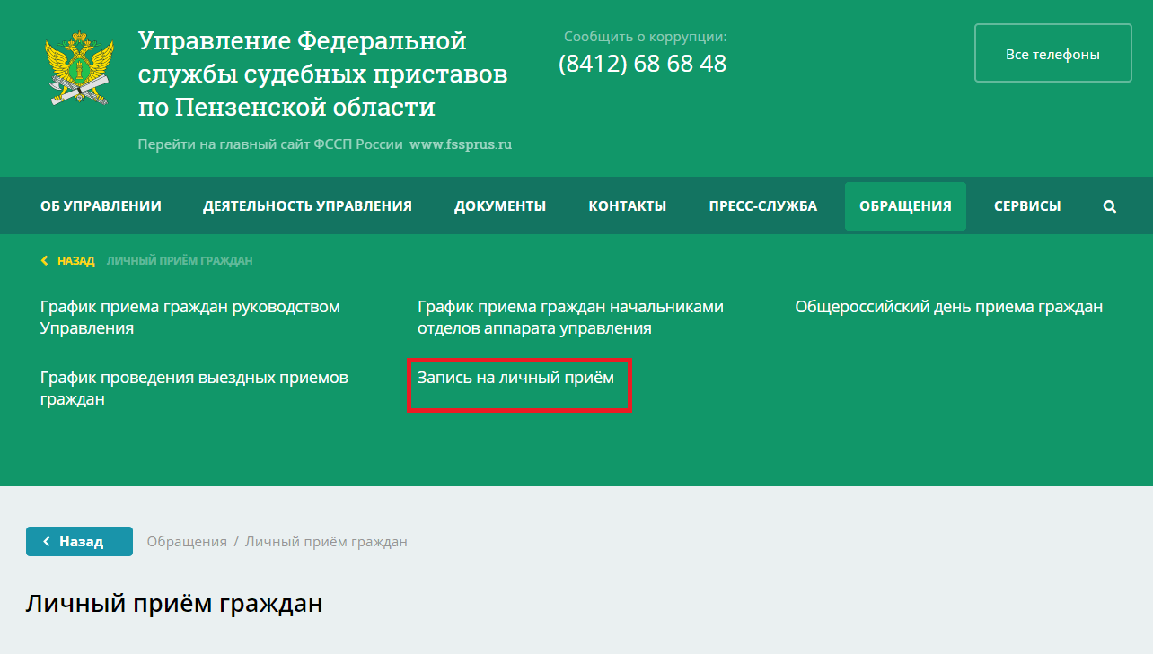 Пошаговая инструкция для записи на прием граждан судебными приставами:
