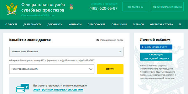 | На портале | Федеральной службы судебных приставов. |