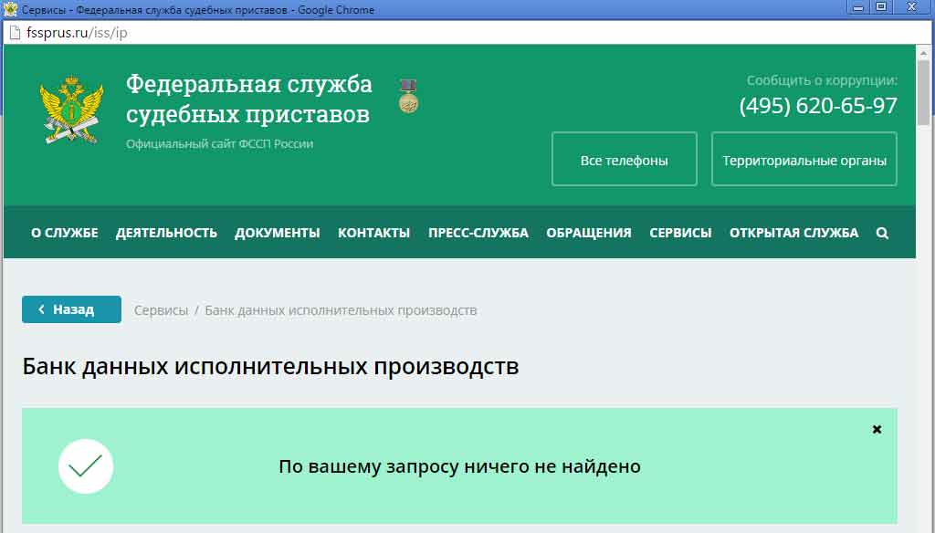 Будут найдены все исполнительные производства, заведённые на человека с указанной фамилией и именем в выбранном регионе. Если ничего не найдётся, то вы увидите такое приятное сообщение :