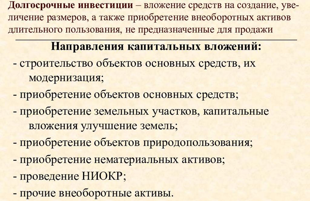 Какая есть альтернатива банковским вкладам? В чем отличия долгосрочных и краткосрочных инвестиций? Как ведется бухгалтерский учет долгосрочных инвестиций?