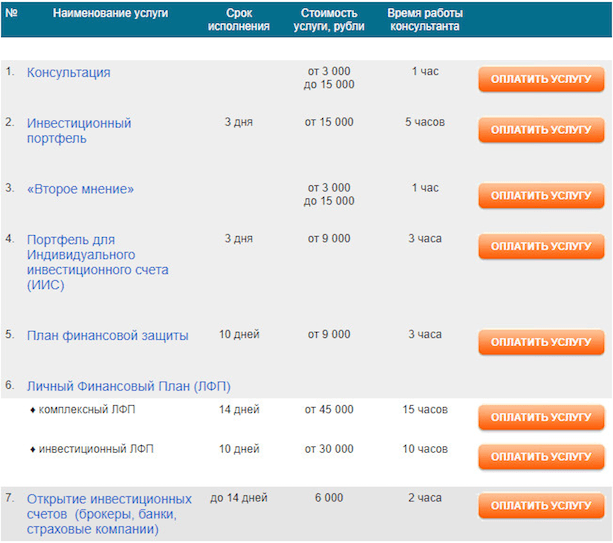 Консультант разработает для вас личный финансовый план, стратегию сбережения и накопления и многое другое. Услуги недешевые. Я посмотрела прайс-лист на сайте Владимира Савенка. Он – первый независимый финансовый консультант в России, который написал много книг по этой теме. К нему я бы с удовольствием записалась на консультацию.