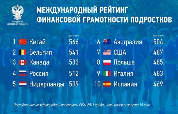 А еще лучше результаты среди школьников. Наши российские учащиеся за 3 года исследований поднялись с 10-го на 4-е место. Они опередили США, Нидерланды и Австралию. Так что наше финансовое будущее совсем не темное.