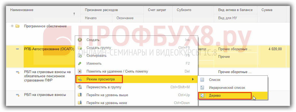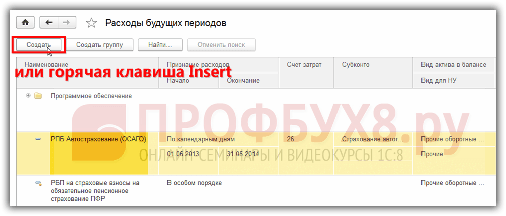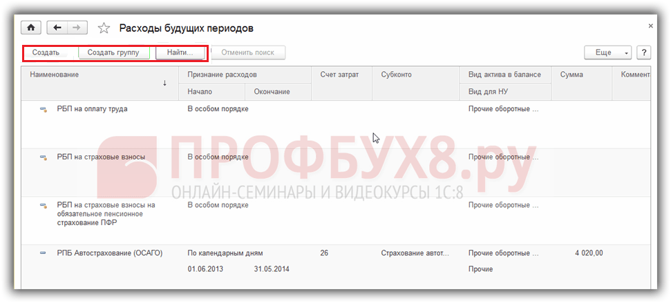 Расходы будущих периодов в 1с 8.2 бухгалтерия