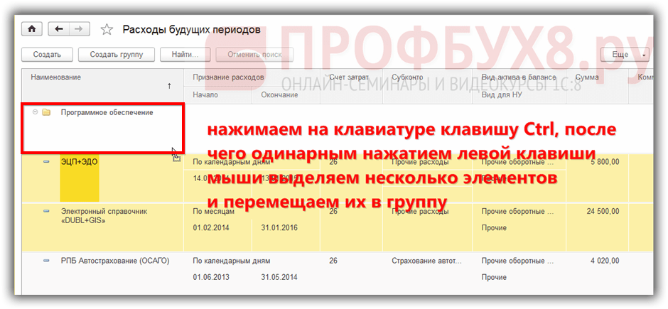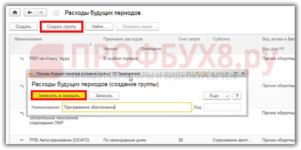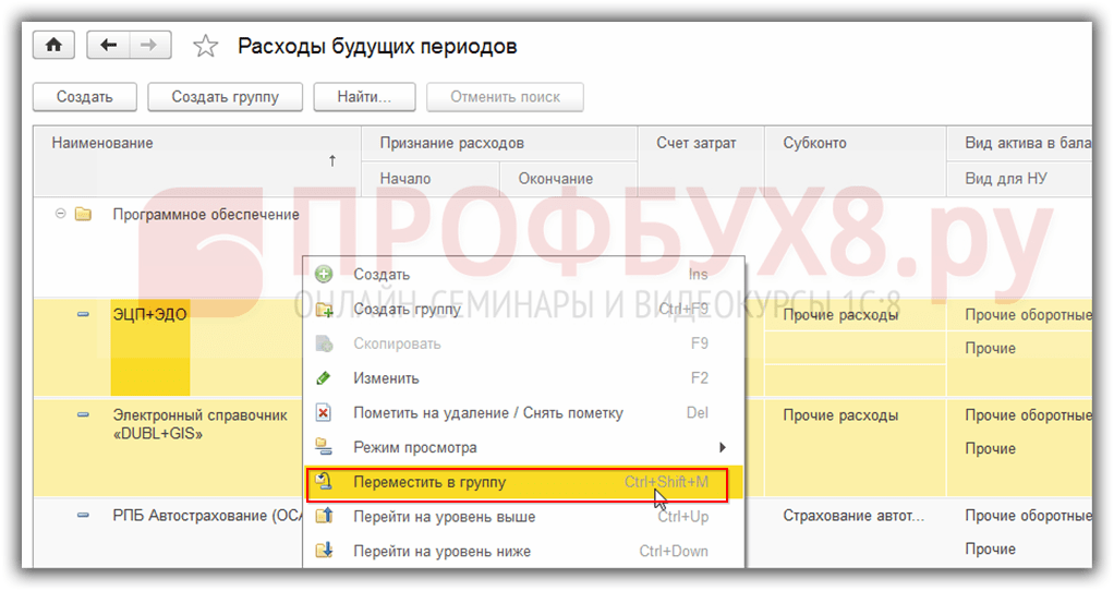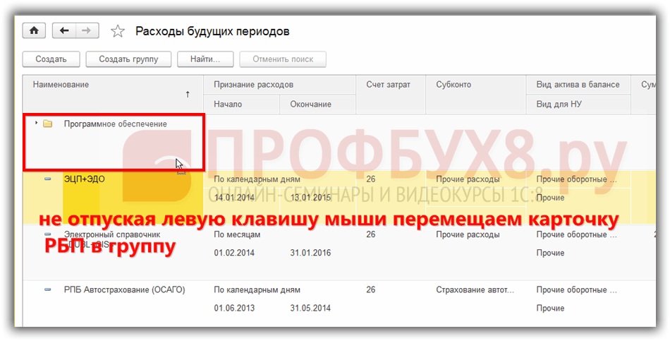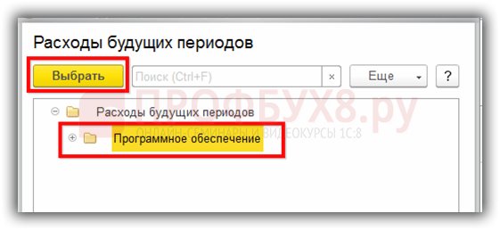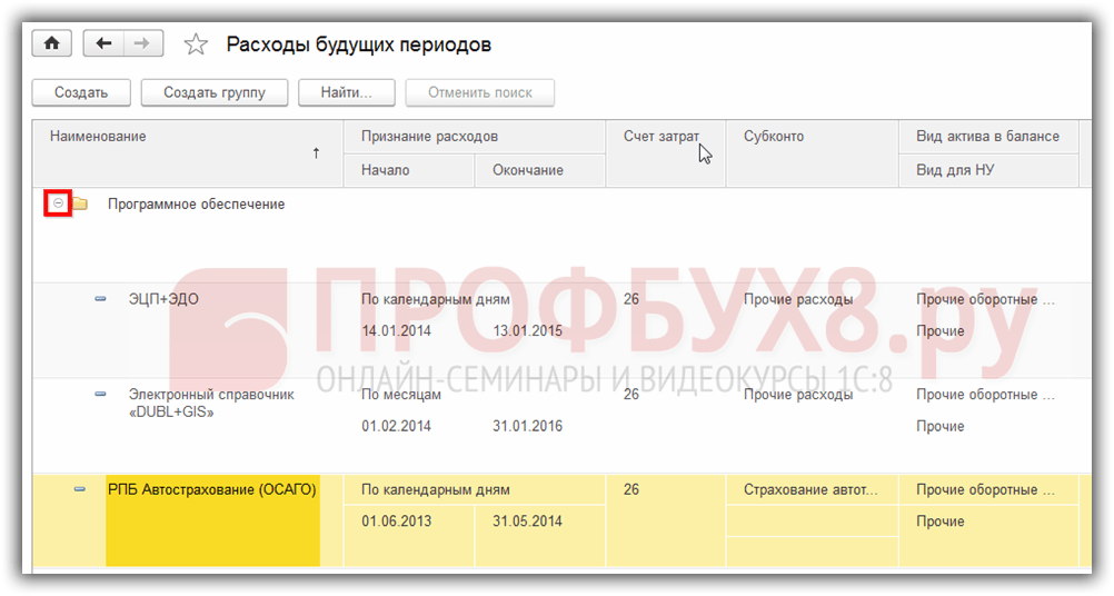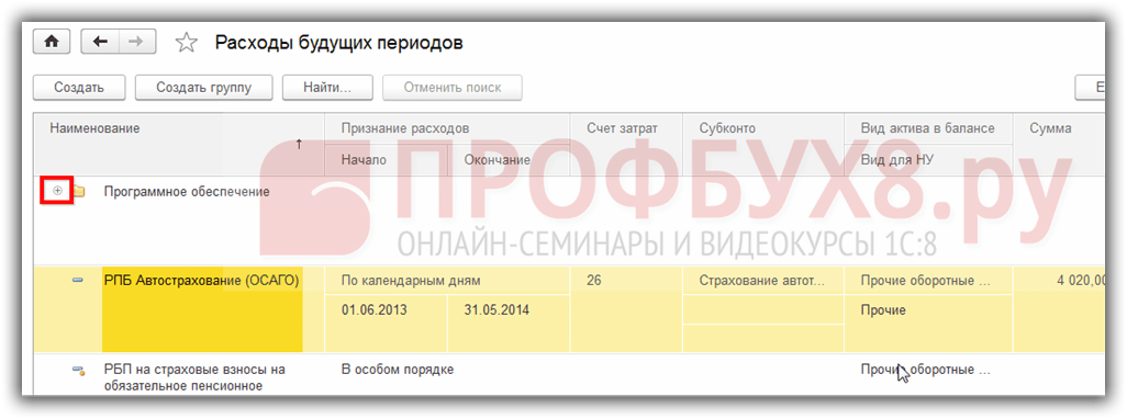 Выбираем группу расходов будущих периодов: