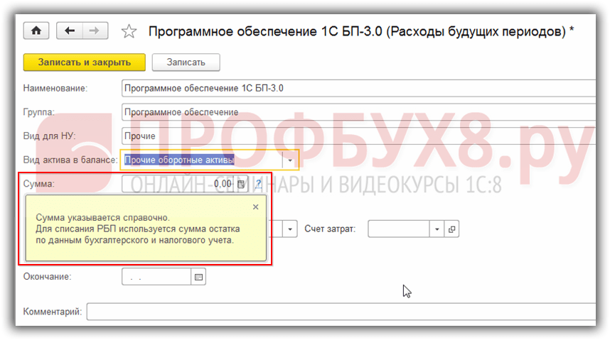Списание расходов будущих периодов в 1С 8.3