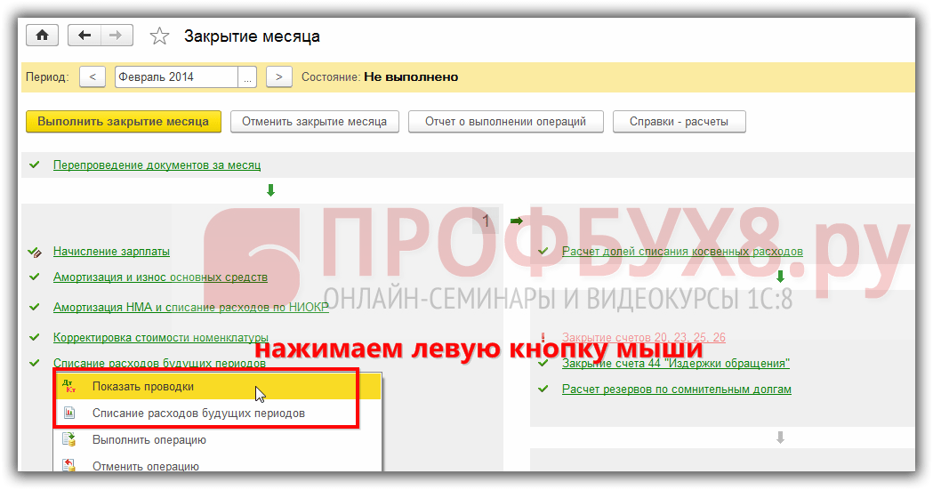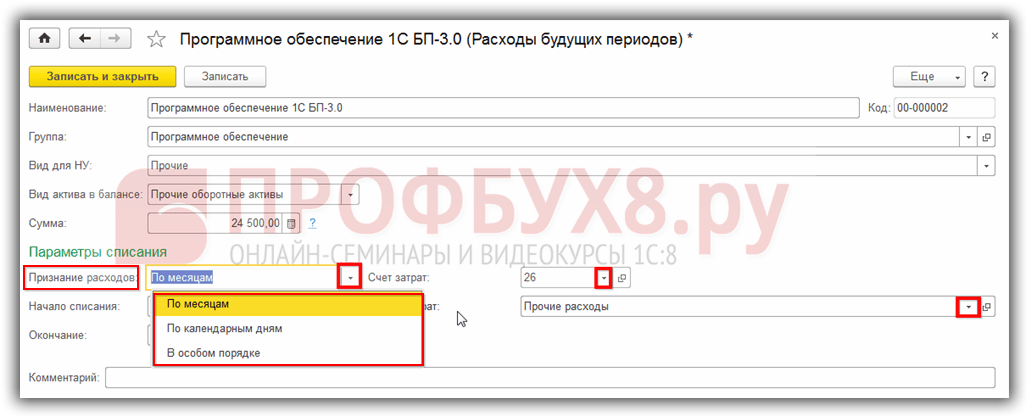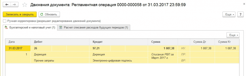 Списание расходов будущих периодов при закрытии месяца