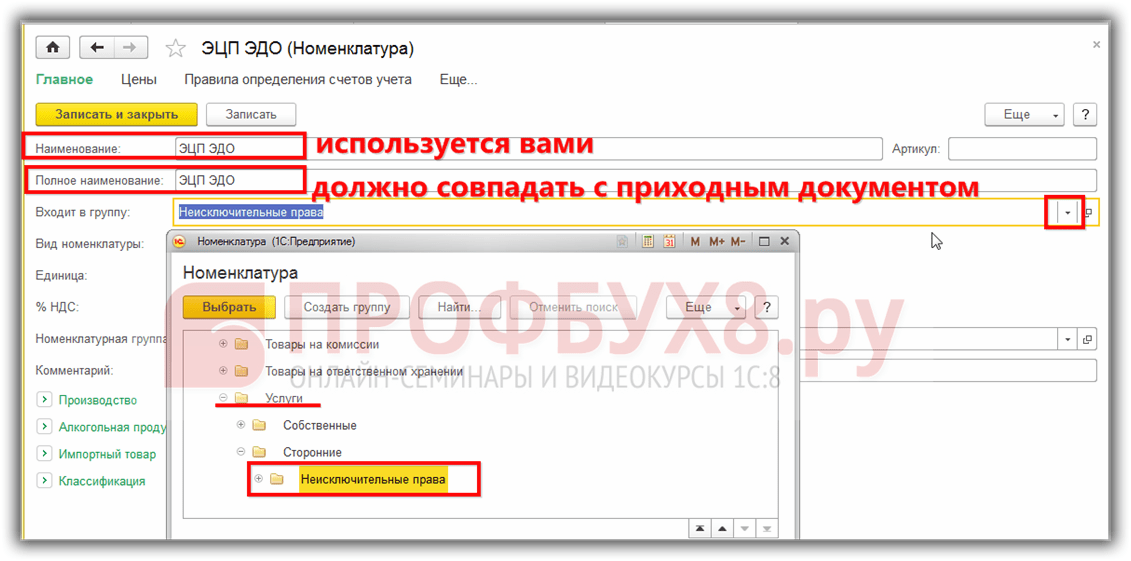 Каким образом заполняется номенклатурная позиция вида Услуга в 1С 8.2 (8.3) смотрите в нашем видео уроке: