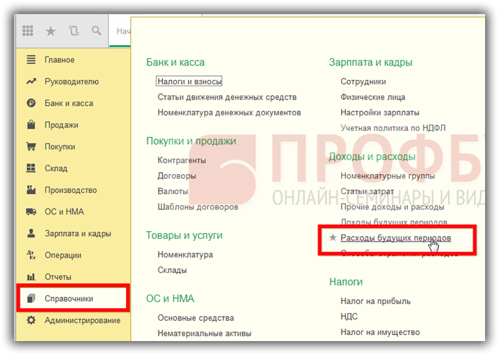 Где отражаются расходы будущих периодов в 1С 8.3