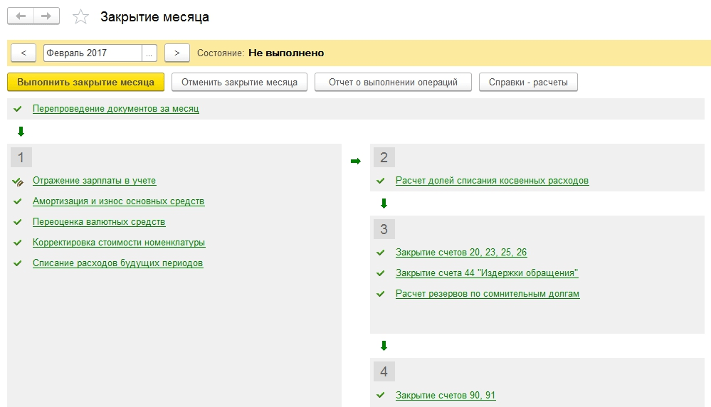 Помощник по закрытию месяца в 1С 8.3 позволяет сразу сделать все необходимые регламентные операции по закрытию месяца.