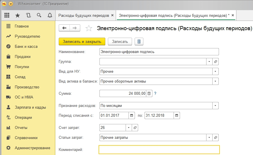 Как отразить расходы будущих периодов в 1С 8.3 – пошагово