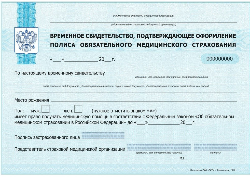 Обычно временное свидетельство, подтверждающее оформление полиса, оформляется для новорожденных, при утере или порче постоянной страховки, при смене личных данных или адреса застрахованного лица, при переоформлении старого договора на документ нового образца, при смене страховщика. Свидетельство выдаётся на 30 рабочих дней, после чего заявитель получает постоянную бессрочную медстраховку.