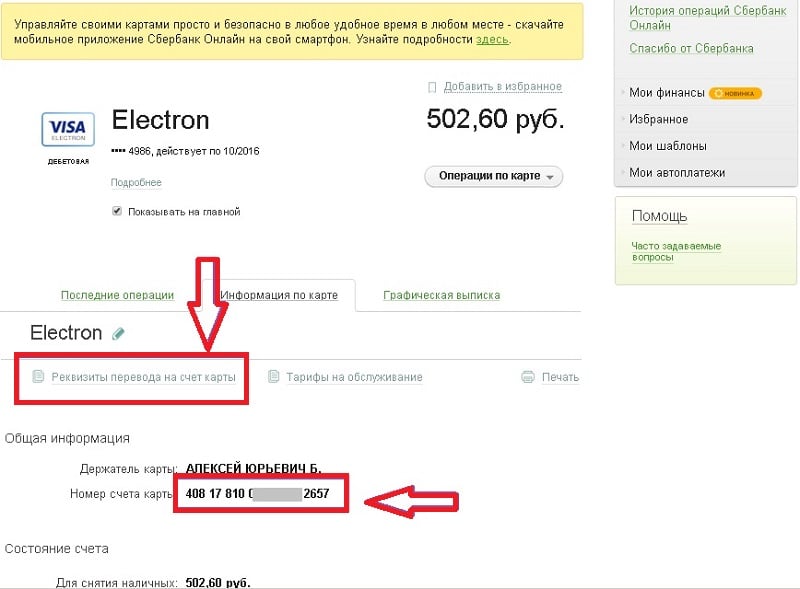 Как узнать реквизиты карты сбербанка по номеру карты: