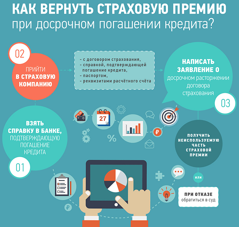 Пошаговая инструкция по возврату страховки включает 3 действия:
