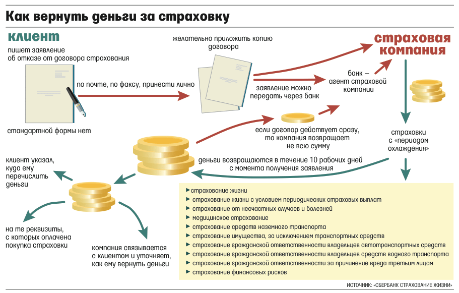 Если «лишняя» страховка была подключена при получении ссуды и 14-дневный срок по ней еще не прошел, то вернуть деньги за нее достаточно просто. Заемщик может использовать для этого период охлаждения.