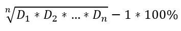 Срок владения активами может составлять несколько лет. При этом большинство активов не растет на одну и ту же величину. Такие активы как акции могут падать или расти на десятки или сотни процентов в год. Поэтому хочется знать, сколько в среднем в год росли ваши инвестиции. Как тогда вычислить среднюю годовую доходность? Среднегодовая доходность рассчитывается через извлечение корня по формуле: