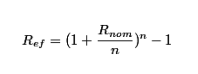 Эффективная годовая ставка – годовая ставка, учитывающая начисленные за год сложные проценты по периодической ставке. Она равна процентному отношению прироста капитала (чистого дохода) за год и первоначальной суммы капитала. Подразумевает, что начисленный в периоде доход реинвестируется.