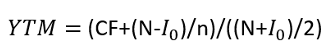 Основным показателем, используемым в анализе полной доходности, является показатель доходность к погашению YTM , который сродни внутренней норме доходности инвестиций IRR, представляет собой среднюю эффективную процентную ставку, при которой величина всех полученных доходов путем дисконтирования приведена к величине первоначальных инвестиций. Как и IRR данный показатель довольно сложен в расчете, однако ниже представлена формула упрощенного расчета этого показателя: