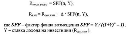 - 2) нормы возврата капитала, т.е. погашение суммы первоначальных вложений. Причем этот элемент коэффициента капитализации применяется только к изнашиваемой части активов.