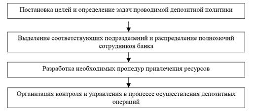 На основе анализа сложившейся практики поведения банками депозитных операций предложена схема формирования депозитной политики коммерческого банка, которая представлена на рисунке 5.