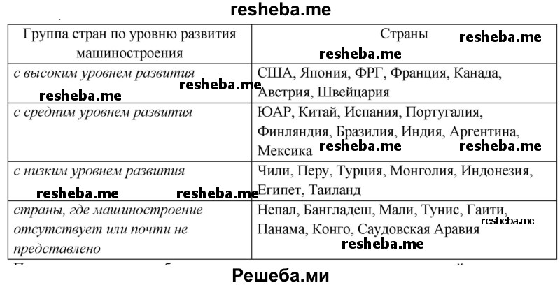 9. Привести по два примера стран с высоким, средним и низким уровнем развития машиностроительной промышленности?