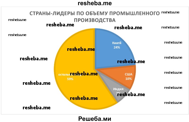 4. Указать, какие из перечисленных ниже стран занимают первые три места по объёму промышленного производства: 1) Россия; 2) Германия; 3) Великобритания; 4) Франция; 5) Италия; 6) Индия; 7) Китай; 8) Япония; 9) США; 10) Бразилия?