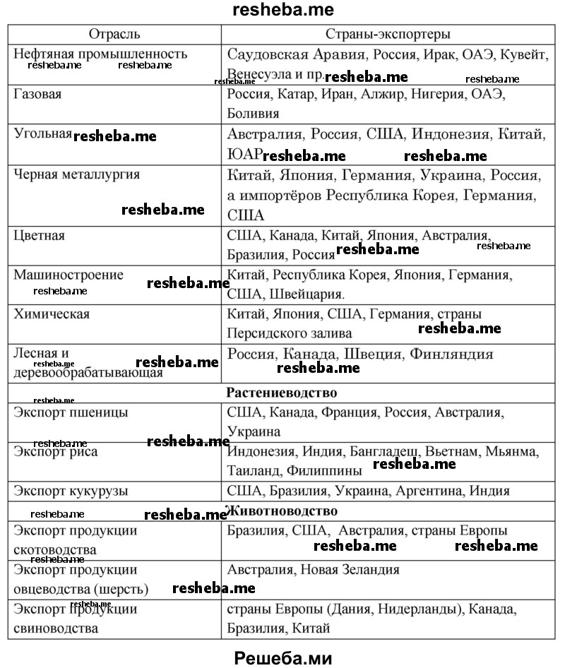 Ответ: Важнейшими экспортерами пшеницы являются: США, Канада, Россия, Франция, Австралия.