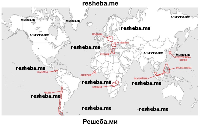 Ответ: а - Китай, Малайзия, Украина, США; б – Чили, Замбия; в – Япония, Россия, Канада.