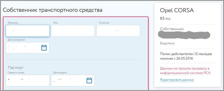 Тут стоит упомянуть, что проверка данных происходит через сайт РСА, каждый страховщик обязан вносить туда информацию о приобретенных полисах. Если по каким-то причинам вы эти данные сменили, то проверка не пройдет и покупка полиса будет невозможна.