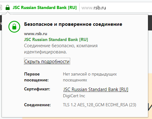 Совет: если опасаетесь за сохранность данных, всегда проверяйте адрес страницы, на которой находитесь. Сверху должна находиться либо подобная пиктограмма с замочком (смотрите ниже), либо надпись https зелёным цветом.