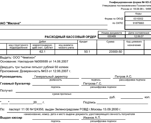 Расходный кассовый ордер вид документа. Заполняем расходный кассовый ордер. Заполнение утвержденной формы бланка РКО
