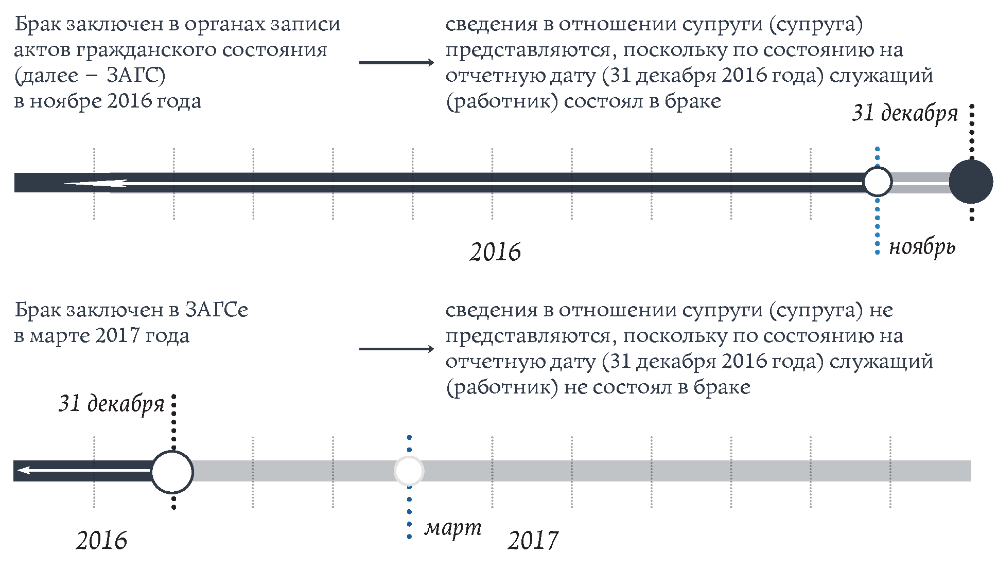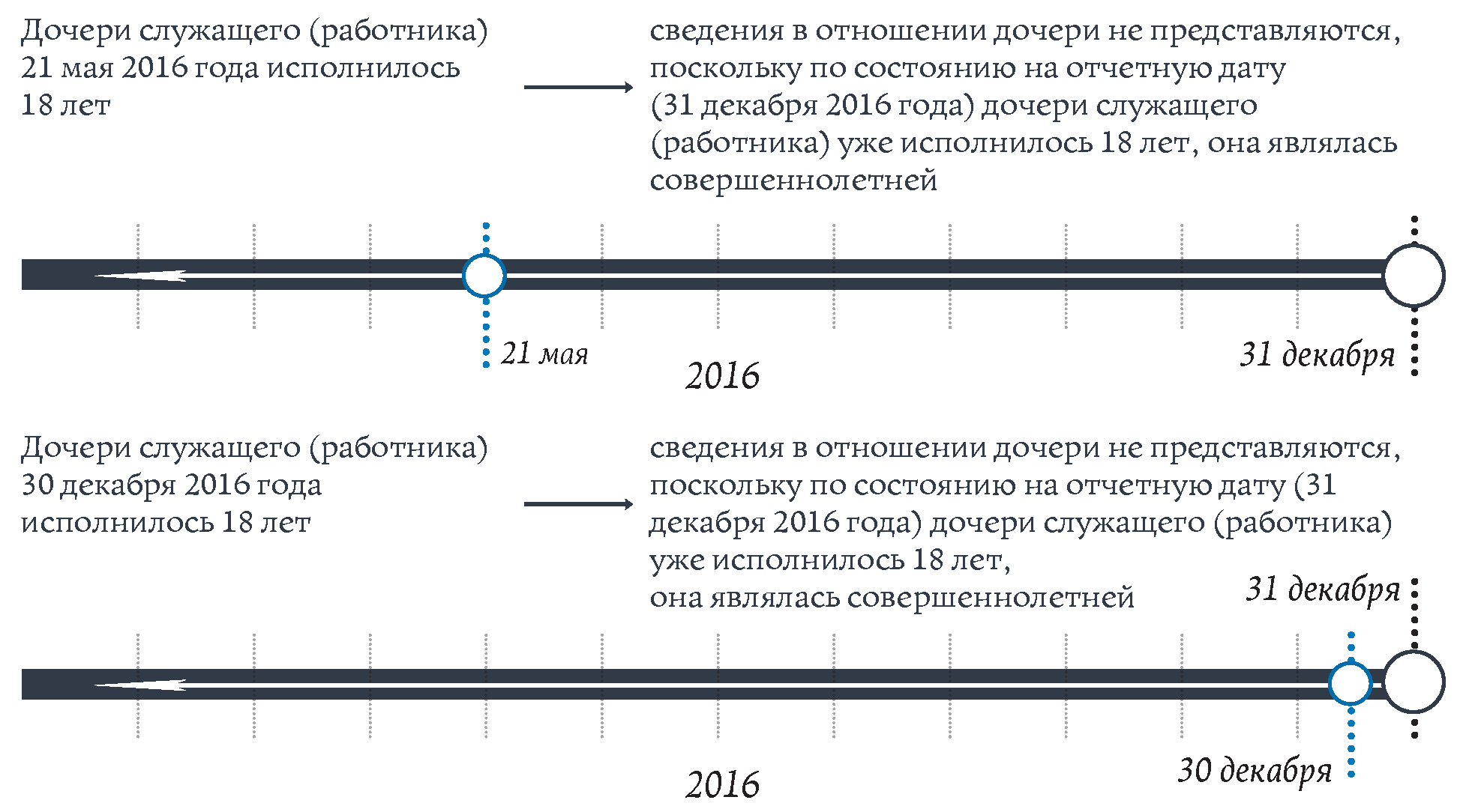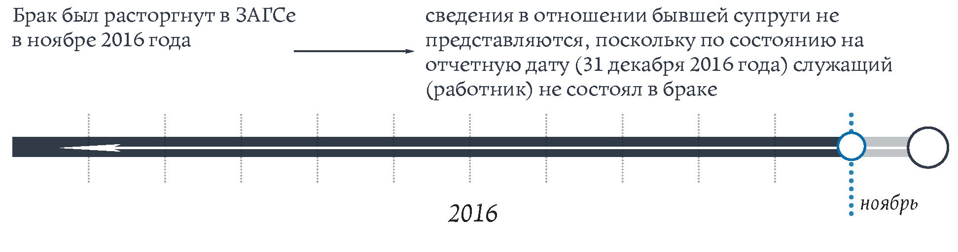 Пример 6: гражданин представляет в сентябре 2016 года сведения в связи с назначением на должность. Отчетной датой является 1 августа 2016 года