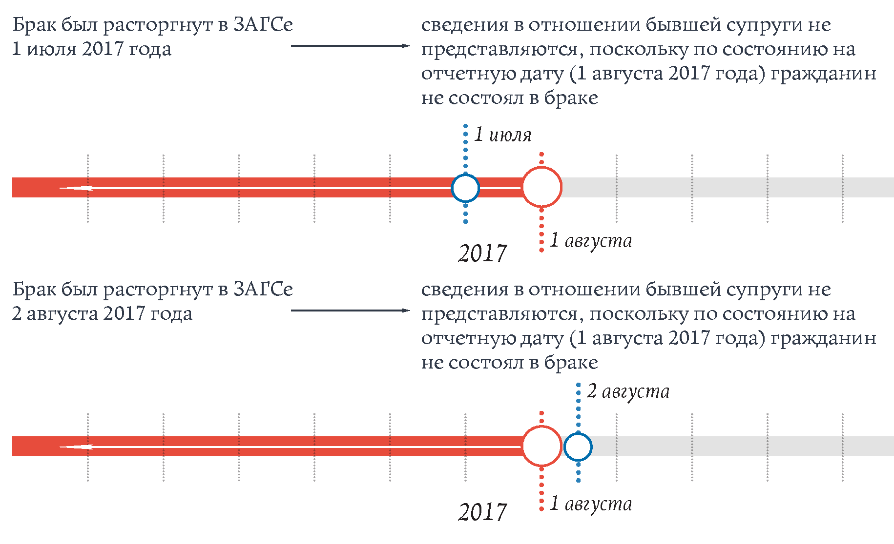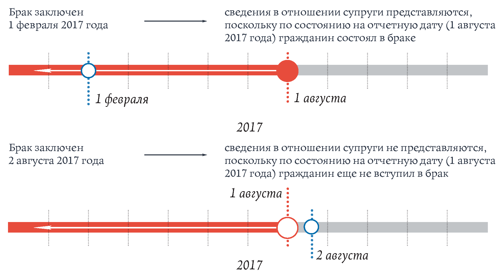 Пример 2: гражданин в сентябре 2017 года представляет сведения в связи с подачей документов для назначения на должность. Отчетной датой является 1 августа 2017 года