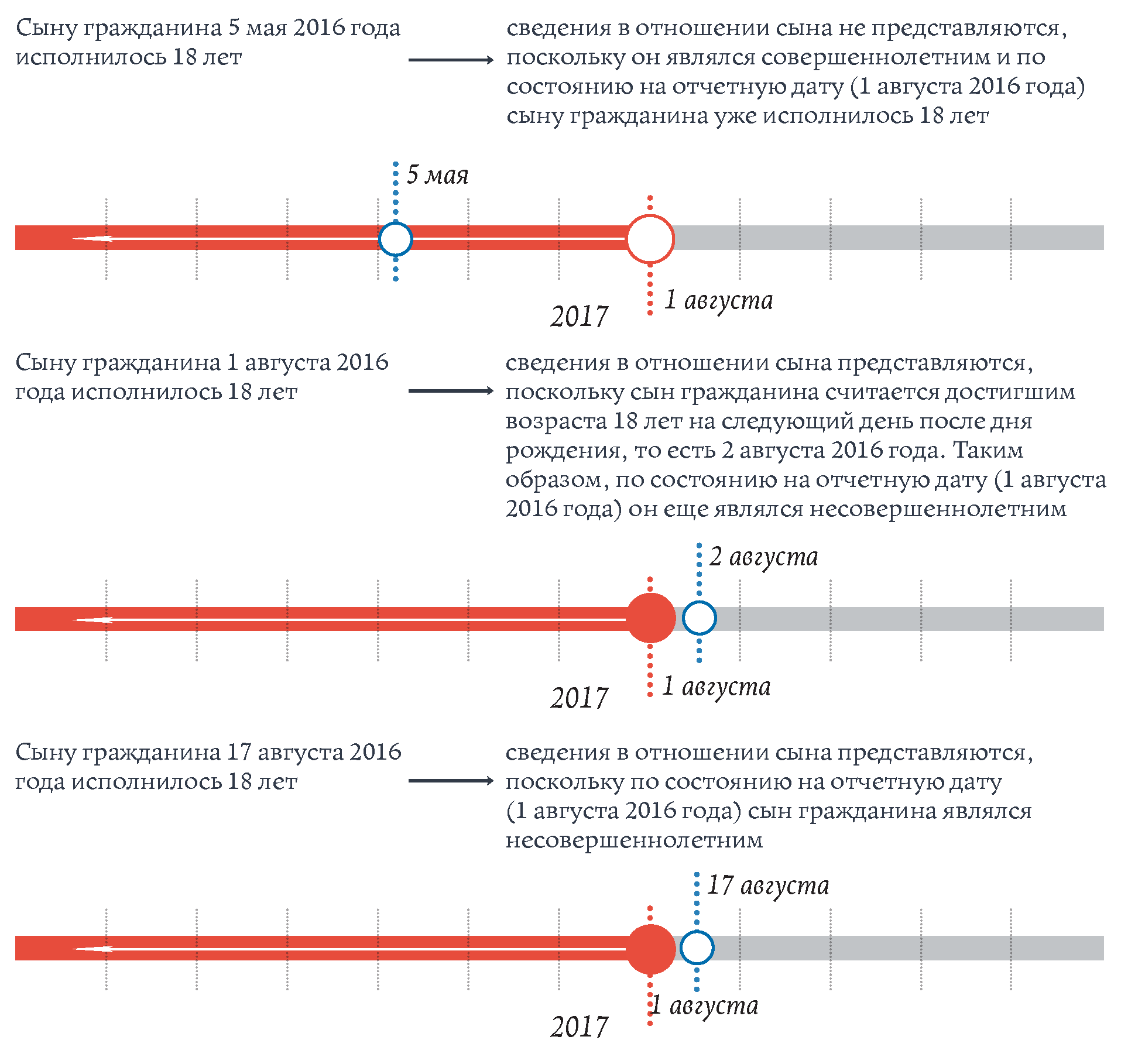 Пример 4: гражданин в сентябре 2017 года представляет сведения в связи с подачей документов для назначения на должность. Отчетной датой является 1 августа 2017 года
