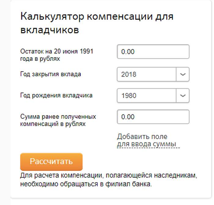 Расчет возможной компенсации вкладчиков Сбербанка СССР