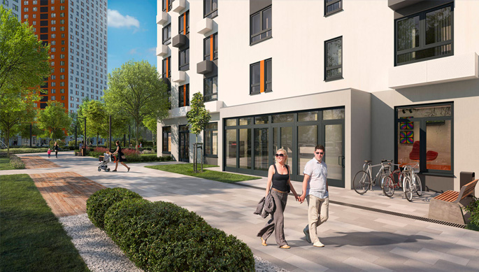 На первых этажах некоторых корпусов расположатся коммерческие помещения. Для парковки автомобилей отведут места в стилобатной части и организуют открытые автостоянки при въезде в комплекс.