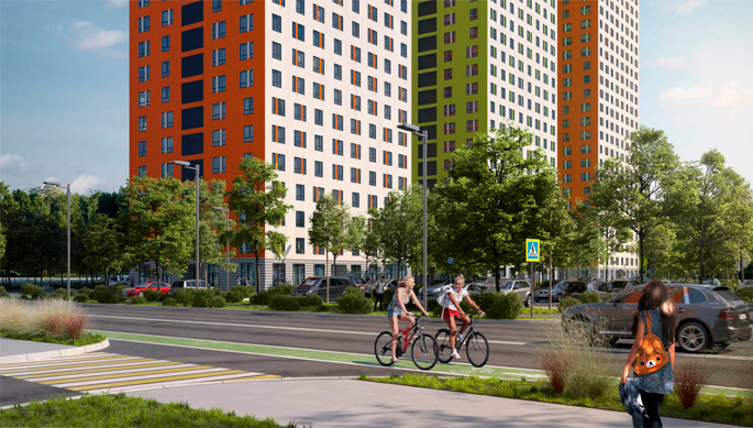 - современная планировка района предусматривает удобные автостоянки, подъездные дороги и гостевые парковки для личного транспорта.