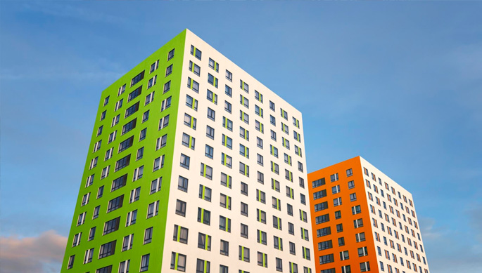 - Есть как монолитные, так и панельные дома;